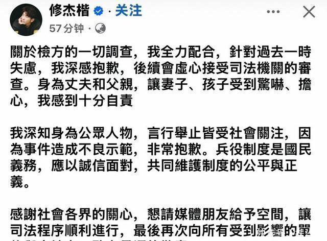 • 修杰楷发文道歉:让妻子贾静雯跟孩子受到惊吓,十分自责